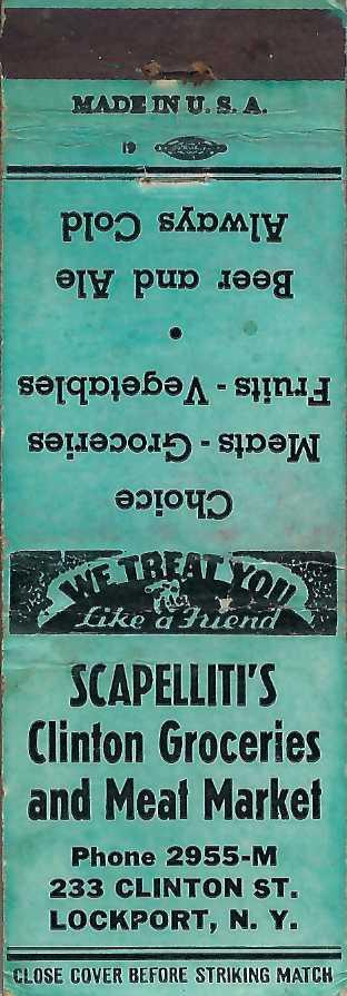 Scapelliti’s Clinton Groceries and Meat Market Scapelliti’s Clinton Groceries and Meat Market This matchcover also appears in the following categories:M-NMarketNew York Grotke’s Meats – Groceries And Sahlen’s Sausage & Cold Cuts Grotke’s Meats – Groceries And Sahlen’s Sausage & Cold Cuts This matchcover also appears in the following categories:HobbyM-NMarketNew YorkPhone NumbersProduct