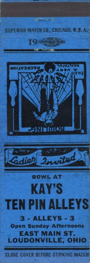 Listings Ten Pin – 8 Ten Pin – 8 This matchcover also appears in the following categories:BarC-D-EIllinoisMenMisc.-Misc.Phone NumbersRestaurantStock Designs Ten Pin – 3 Ten Pin – 3 This matchcover also appears in the following categories:MenMisc.-Misc.OhioStock Designs