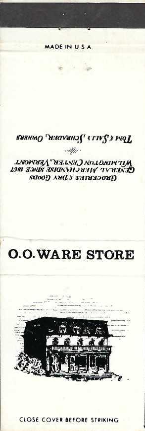 The Store Groceries Sporting Goods Hunting & Fishing Licenses The Store Groceries Sporting Goods Hunting & Fishing Licenses This matchcover also appears in the following categories:MarketPersonalRetailVermont Winchester’s Store Deli – Sandwiches Cigarettes Winchester’s Store Deli – Sandwiches Cigarettes This matchcover also appears in the following categories:DelicatessenMarketRetailSandwichesTobaccoVermontZip Codes O. O. Ware Store Groceries & Dry Goods General Merchandise O. O. Ware Store Groceries & Dry Goods General Merchandise This matchcover also appears in the following categories:MarketRetailVermont Ives General Store Red & White Groceries – Hardware Ives General Store Red & White Groceries – Hardware This matchcover also appears in the following categories:Ice CreamLunchMarketRetailStock DesignsVermont