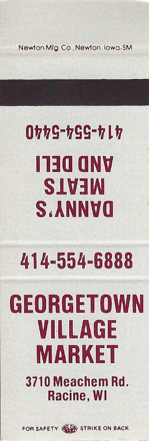Listings Georgetown Village Market And Danny’s Meat & Del Georgetown Village Market And Danny’s Meat & Del This matchcover also appears in the following categories:DelicatessenMarketWisconsin